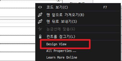 컨트롤에서 마우스 오른쪽 버튼을 누르고 ContextMenu에서 디자인뷰 선택